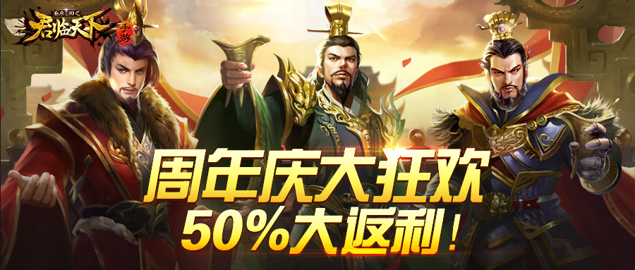 活动期间,主公在点券购买界面首次购买任意额度点券均可获得“一次性50%元宝返利”!