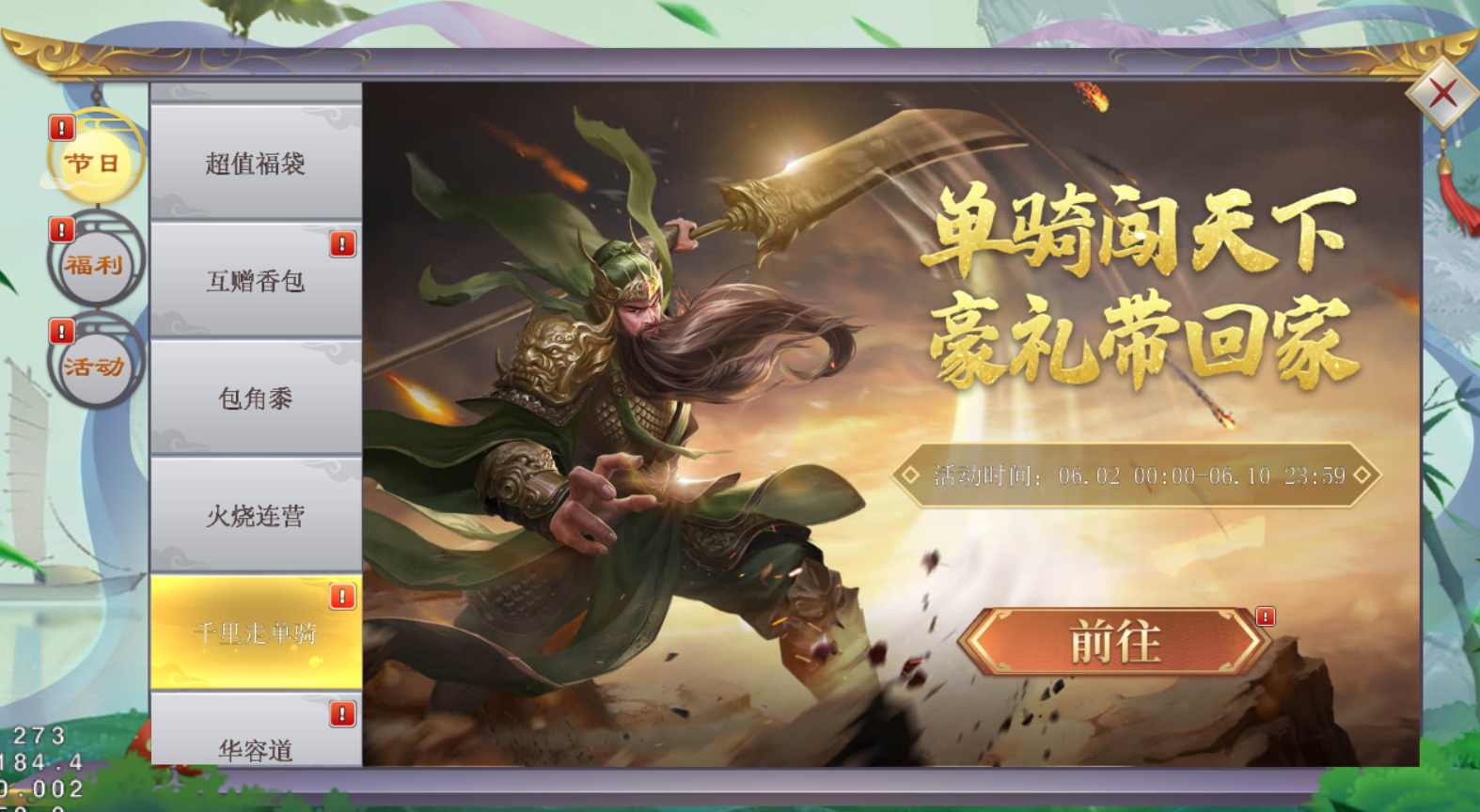 闯关路上会有各种好礼不要错过,终点还有元宝大礼包等着主公哟~