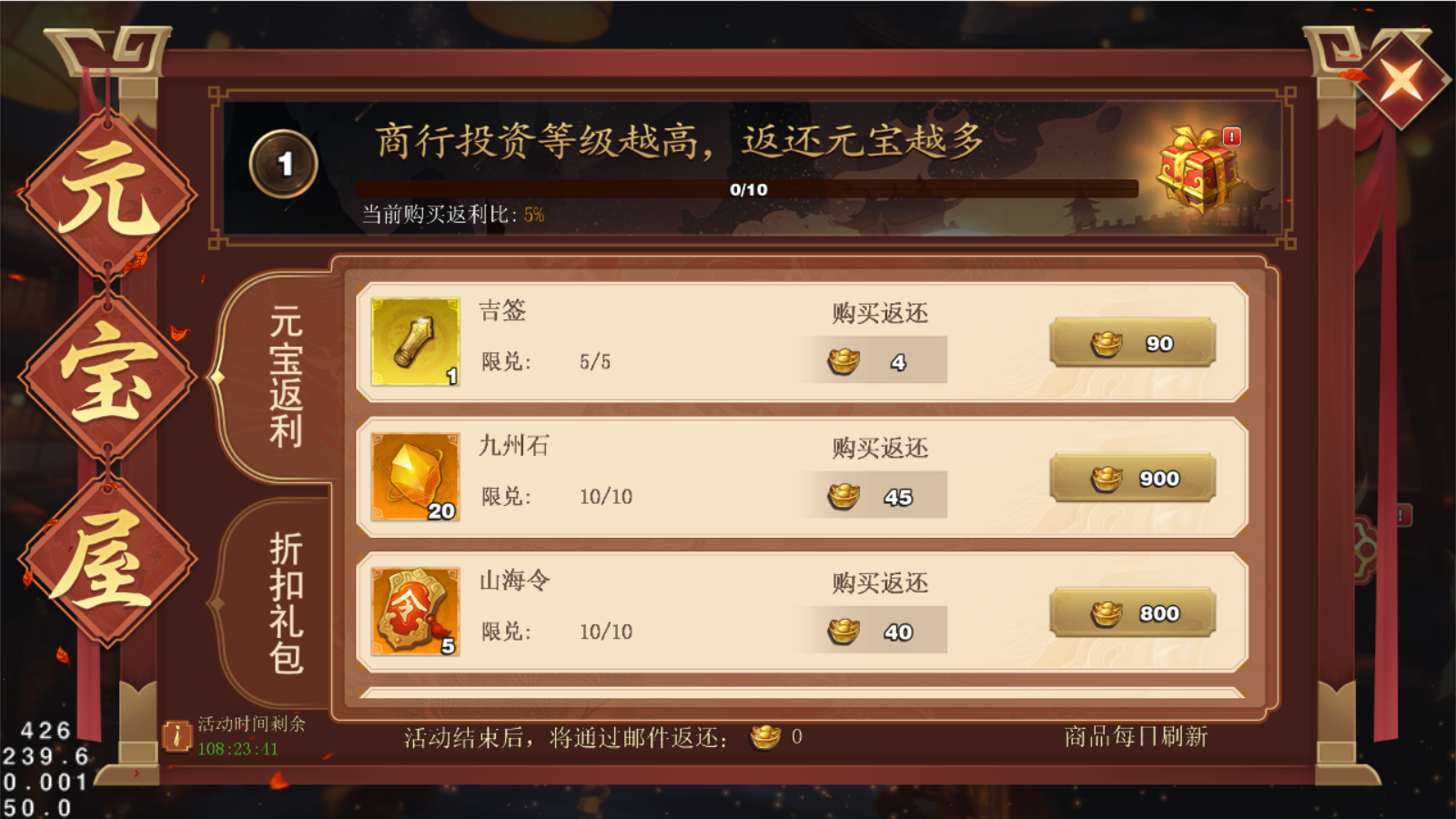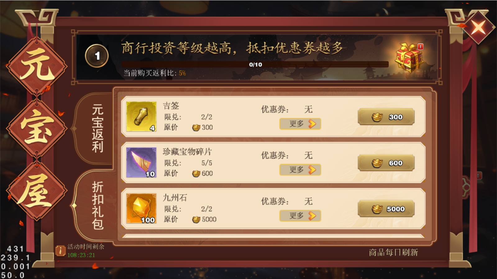折扣礼包:使用元宝优惠券,就可以用更低的折扣价格购买各种道具~