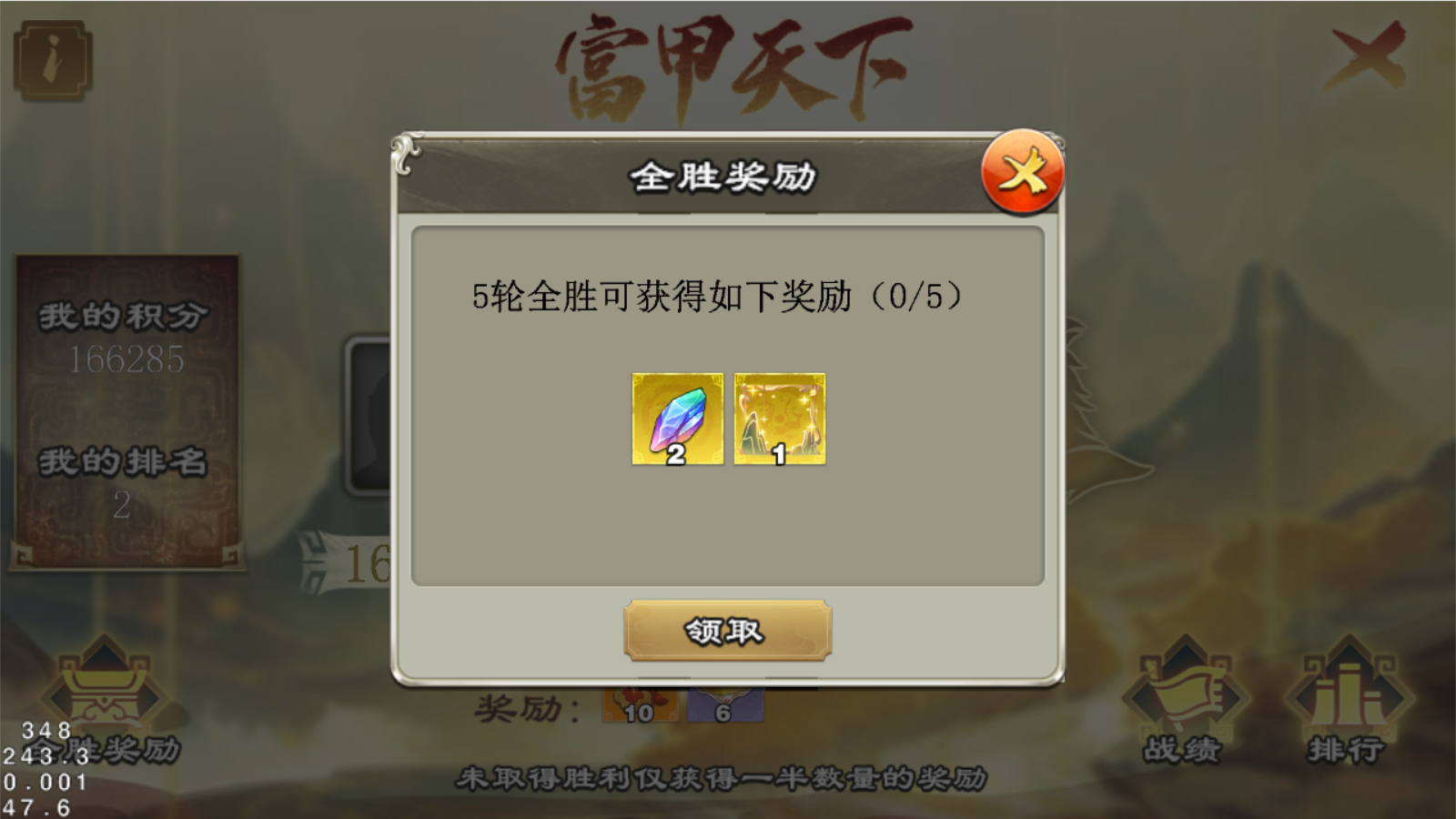 期间累计达到5场胜利可领取全胜奖励。