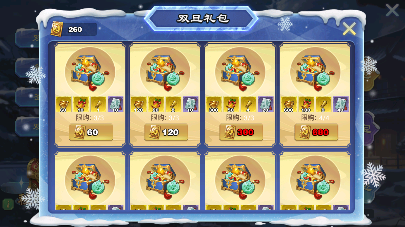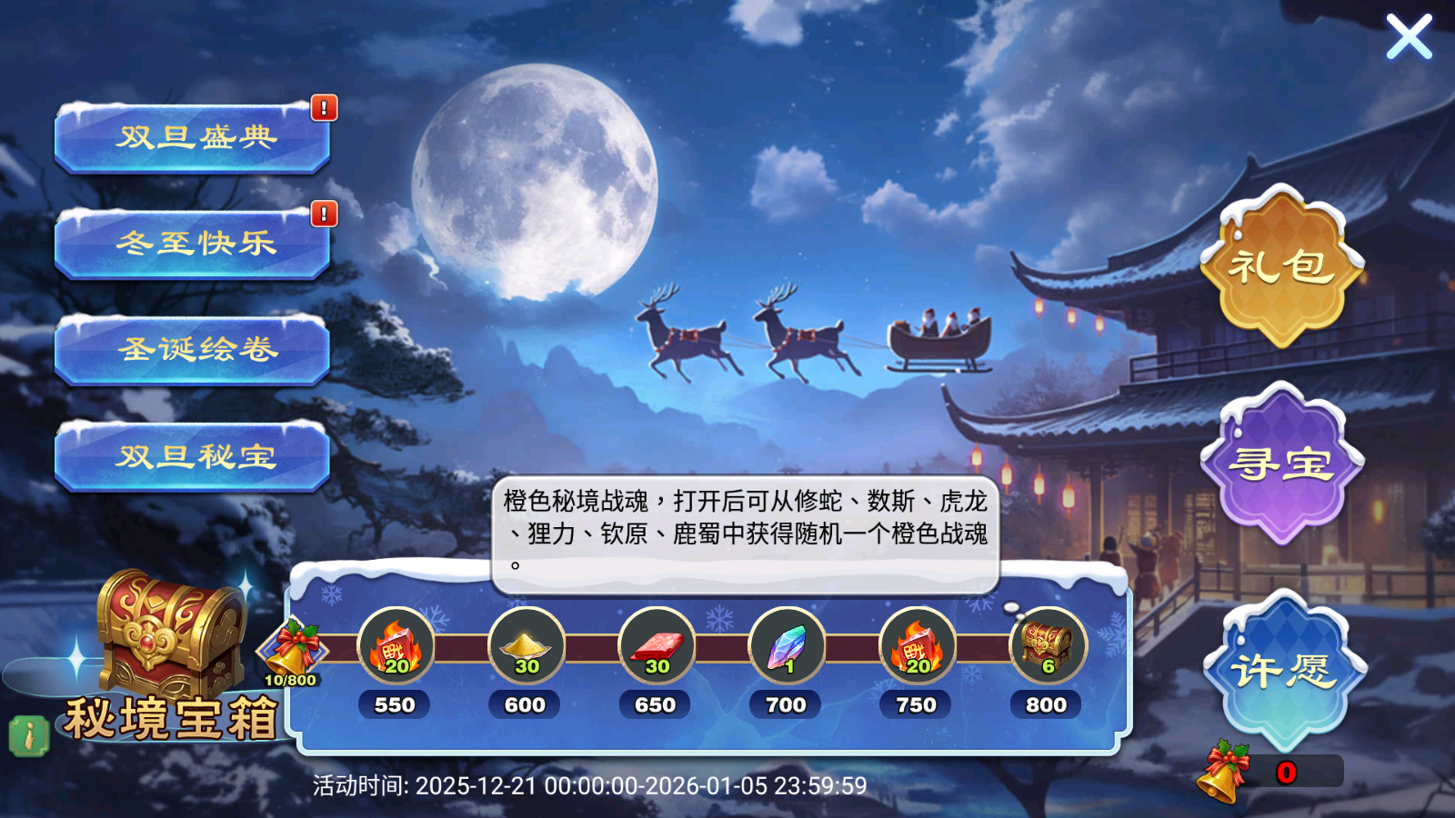 活动期间主公可以按需购买圣诞礼包,包含许愿铃及各种道具~