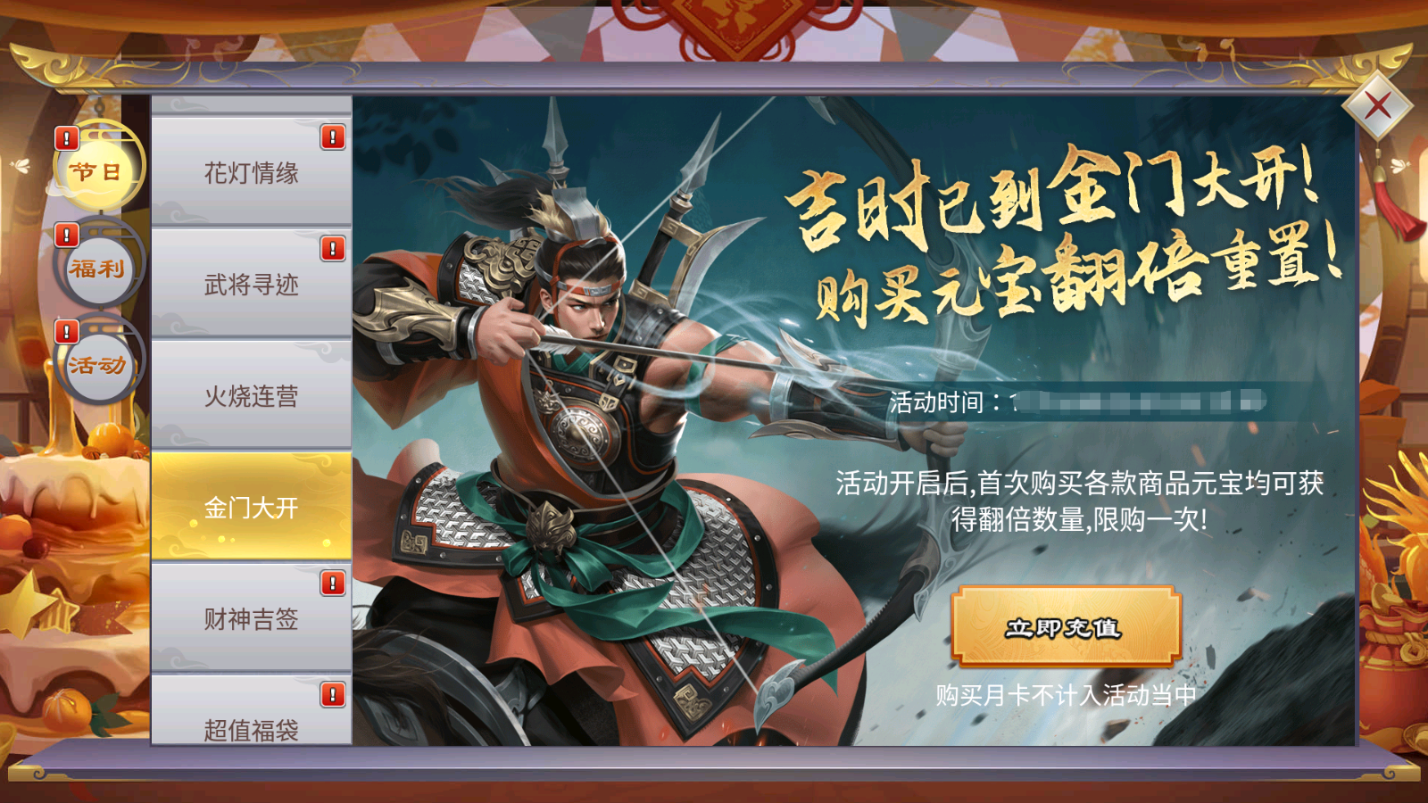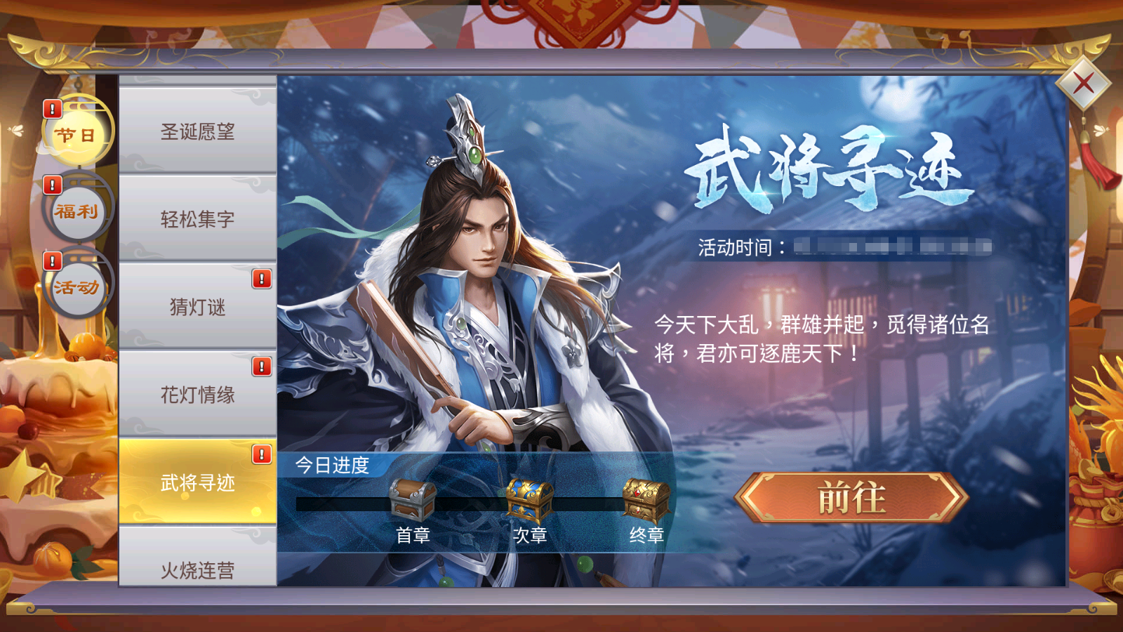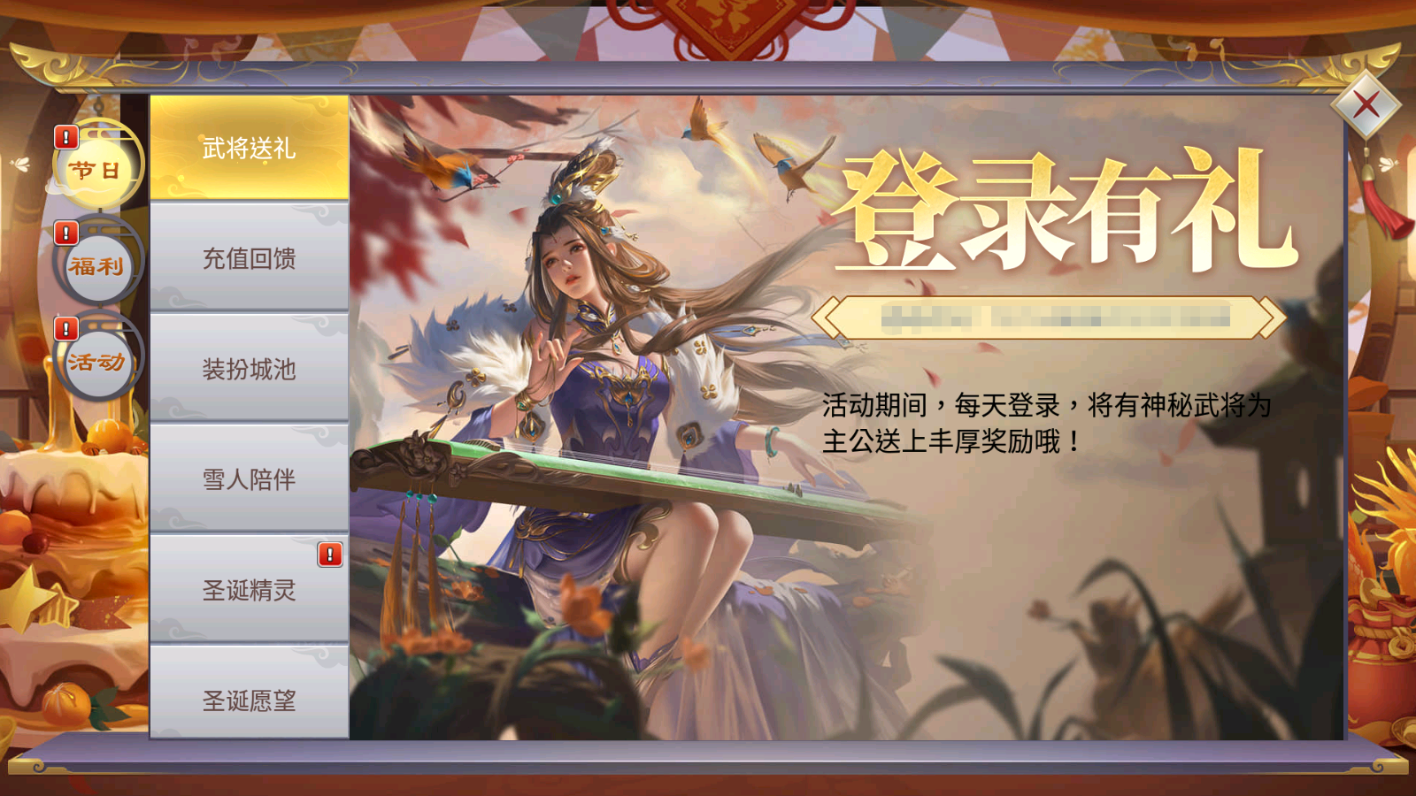 活动期间,每天登录游戏将有神秘武将送上好礼一份~