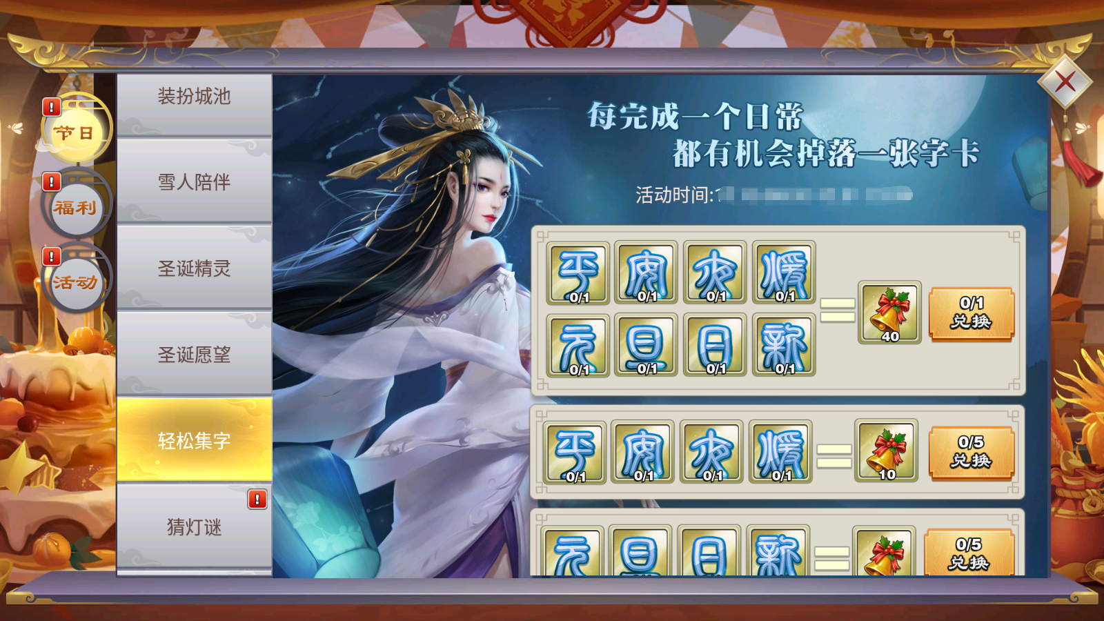 完成日常任务收集字卡,即有机会兑换好礼。