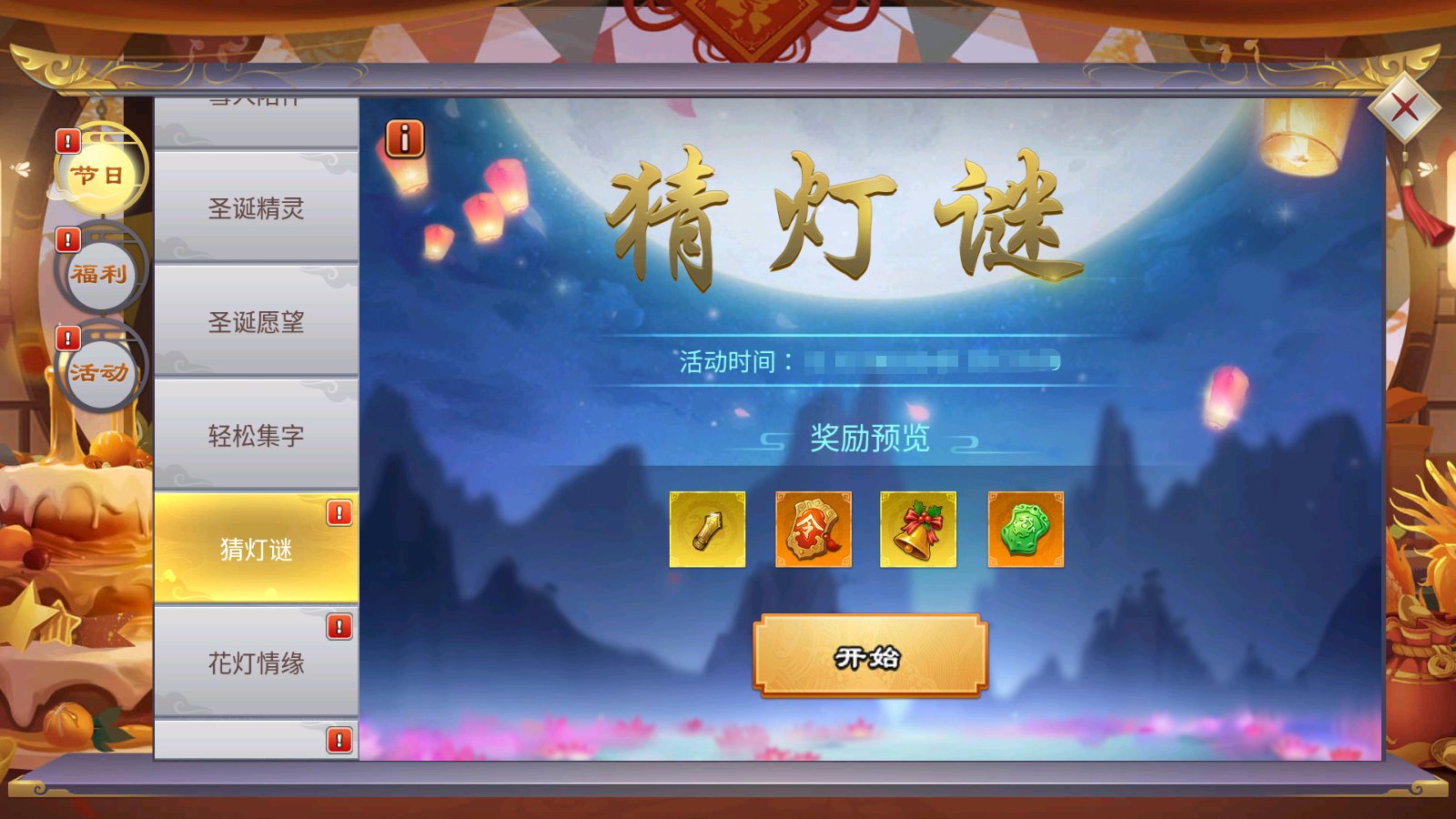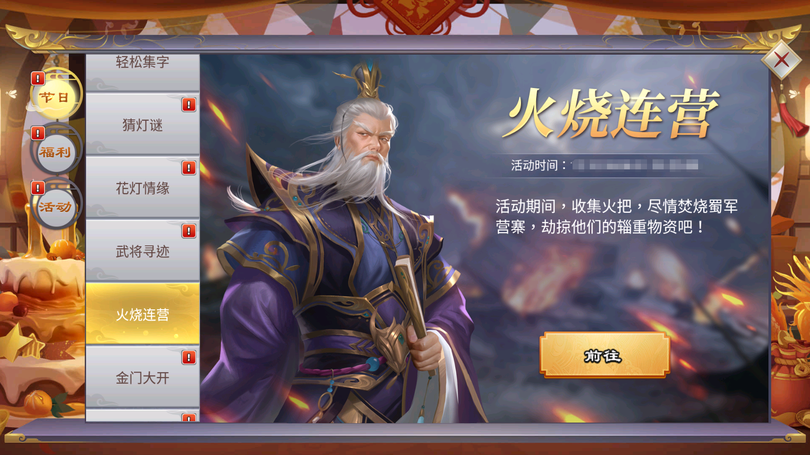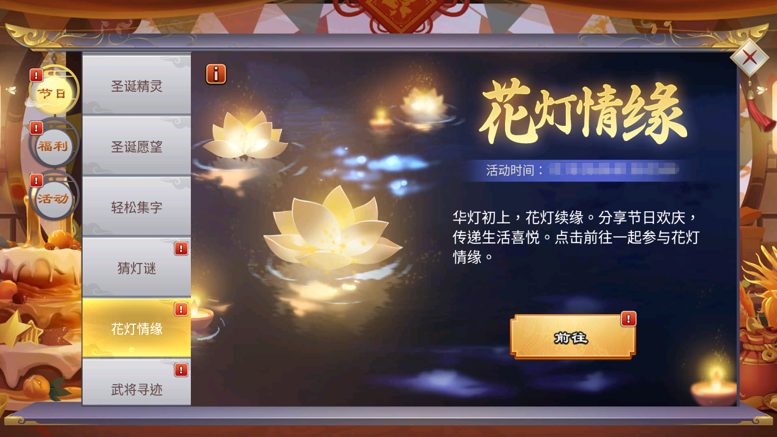 期间主公可以放花灯和捞花灯,与其他主公一起分享节日的喜悦,同样完成活动任务获得奖励。