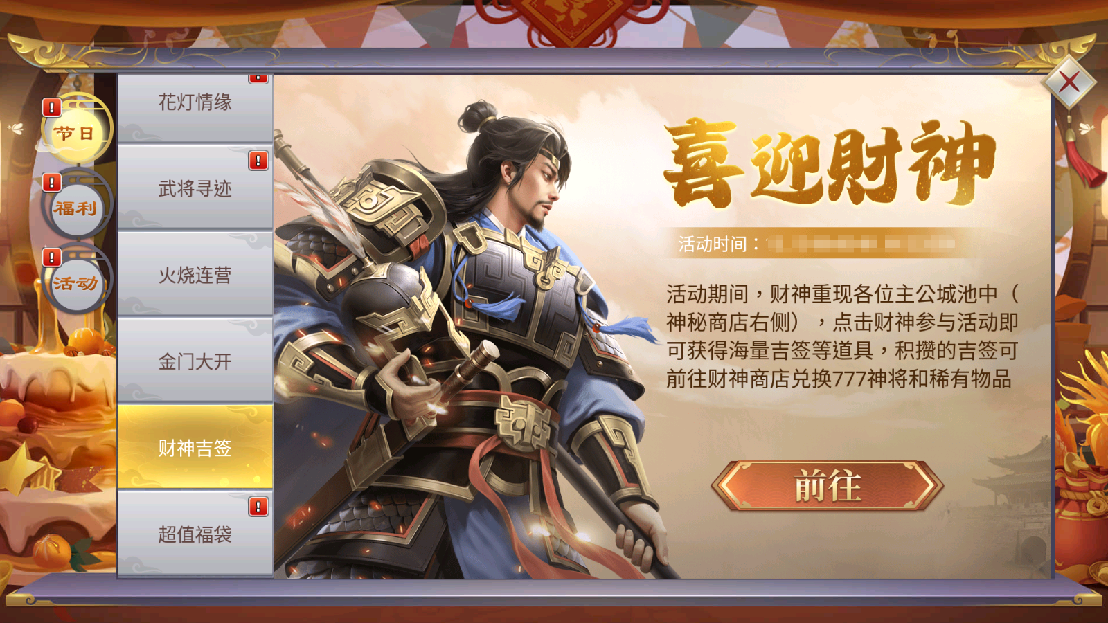 财神到访,主公可趁此机会兑换需要的道具。