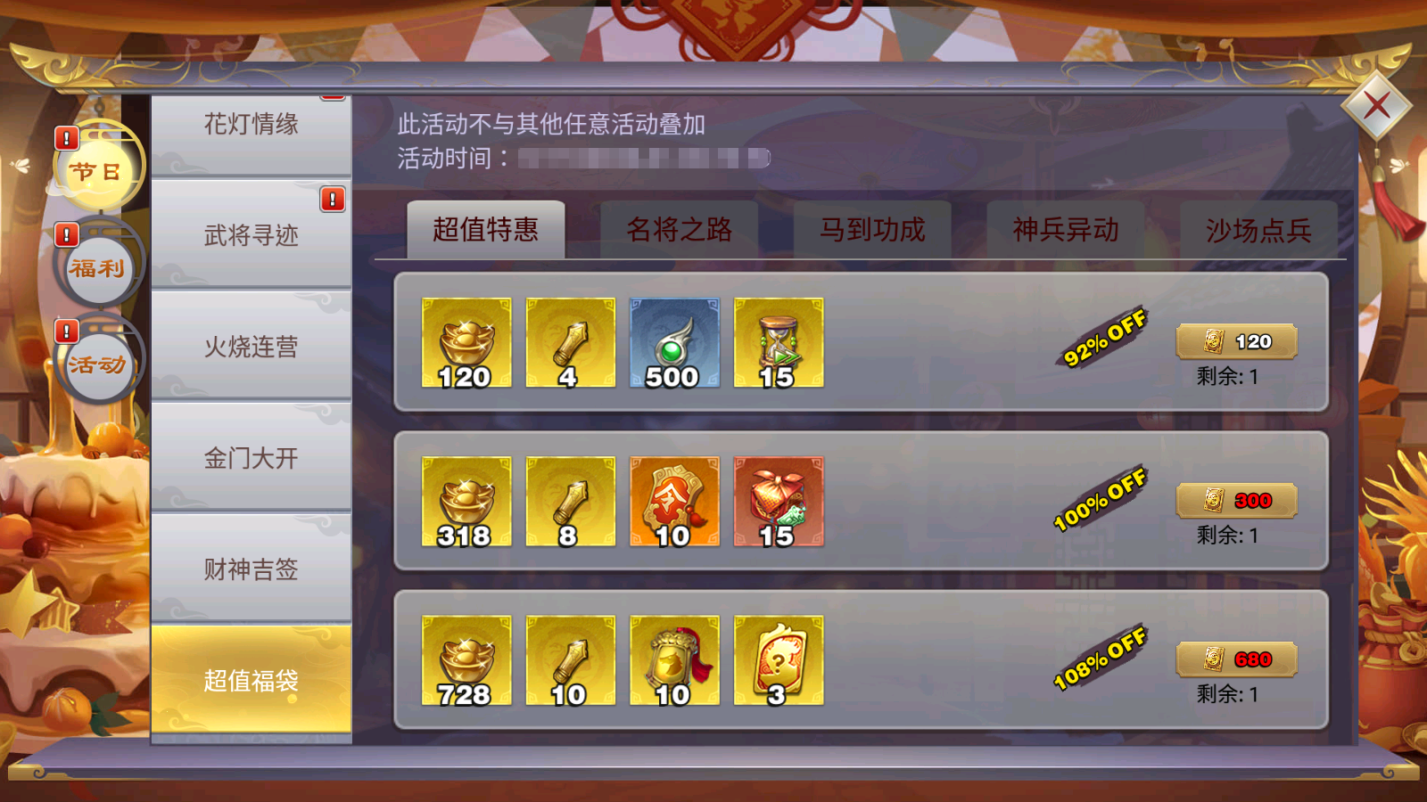 超值福袋限时上架,有需要的主公不要错过。